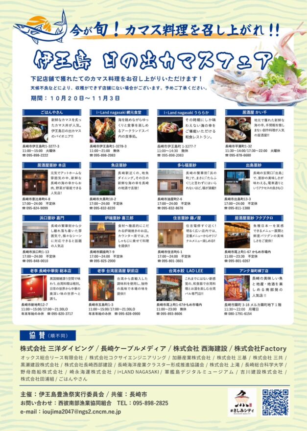 さらに10月20日(月)~11月3日(月)まで伊王島 日の出カマスフェアも開催!