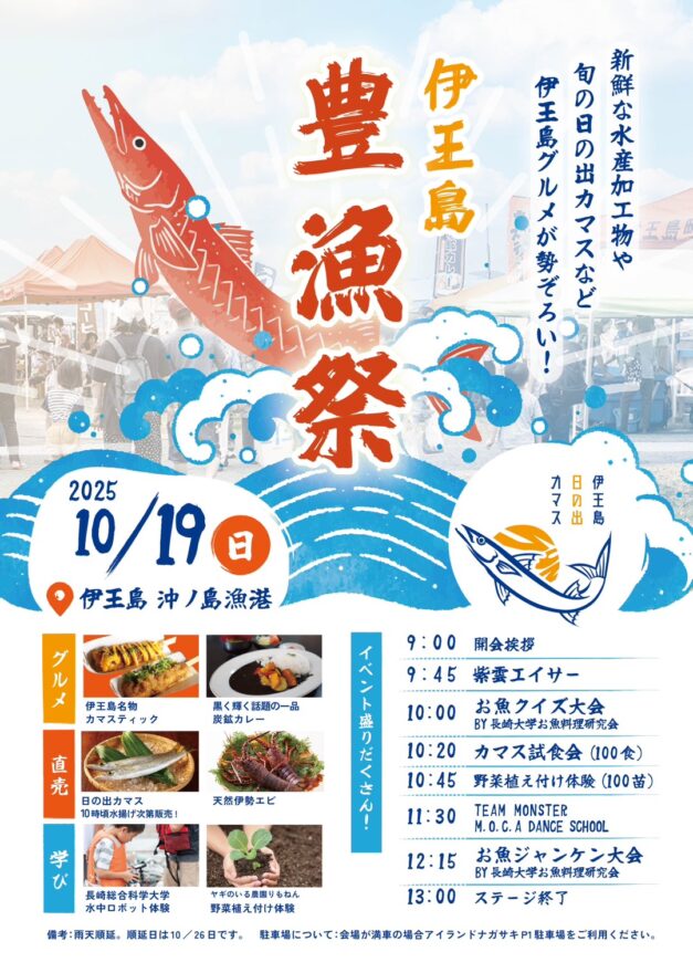 場所:伊王島 沖ノ島漁協 午前9時~午後1時までステージイベント開催