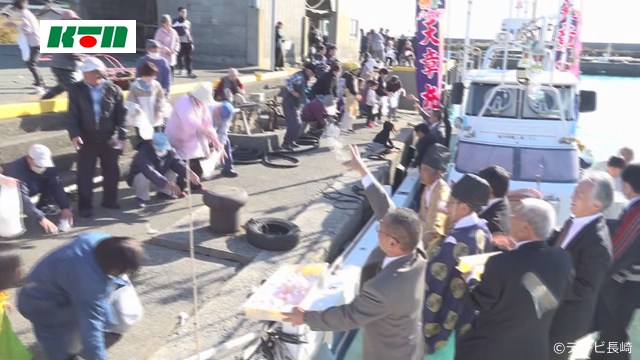 キビナゴ漁などのシーズンを迎える五島市で、約300年前から続く「沖まつり」があり、地区の人たちが航海安全や大漁を祈願しました。